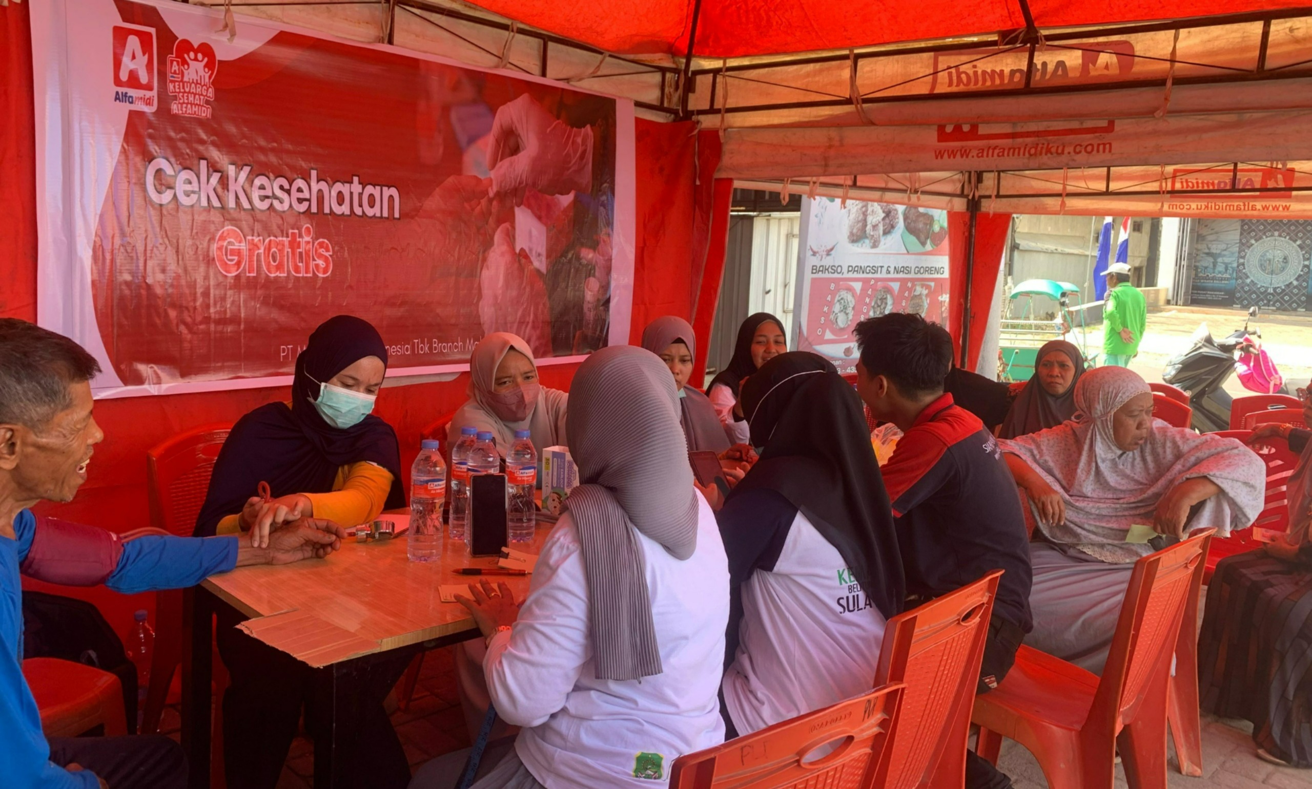 Alfamidi Cabang Makassar bekerja sama dengan Puskesmas Tanru Tedong Kabupaten Sidrap, menggelar cek kesehatan gratis di Alfamidi Tanru Tedong pada Jumat (8/8/2025). Kegiatan ini merupakan bagian dari program corporate social responsibility (CSR) Alfamidi, sebagai wujud kepedulian terhadap kesehatan masyarakat Sidrap. Cek kesehatan yang meliputi tes gula darah, kolesterol, dan asam urat